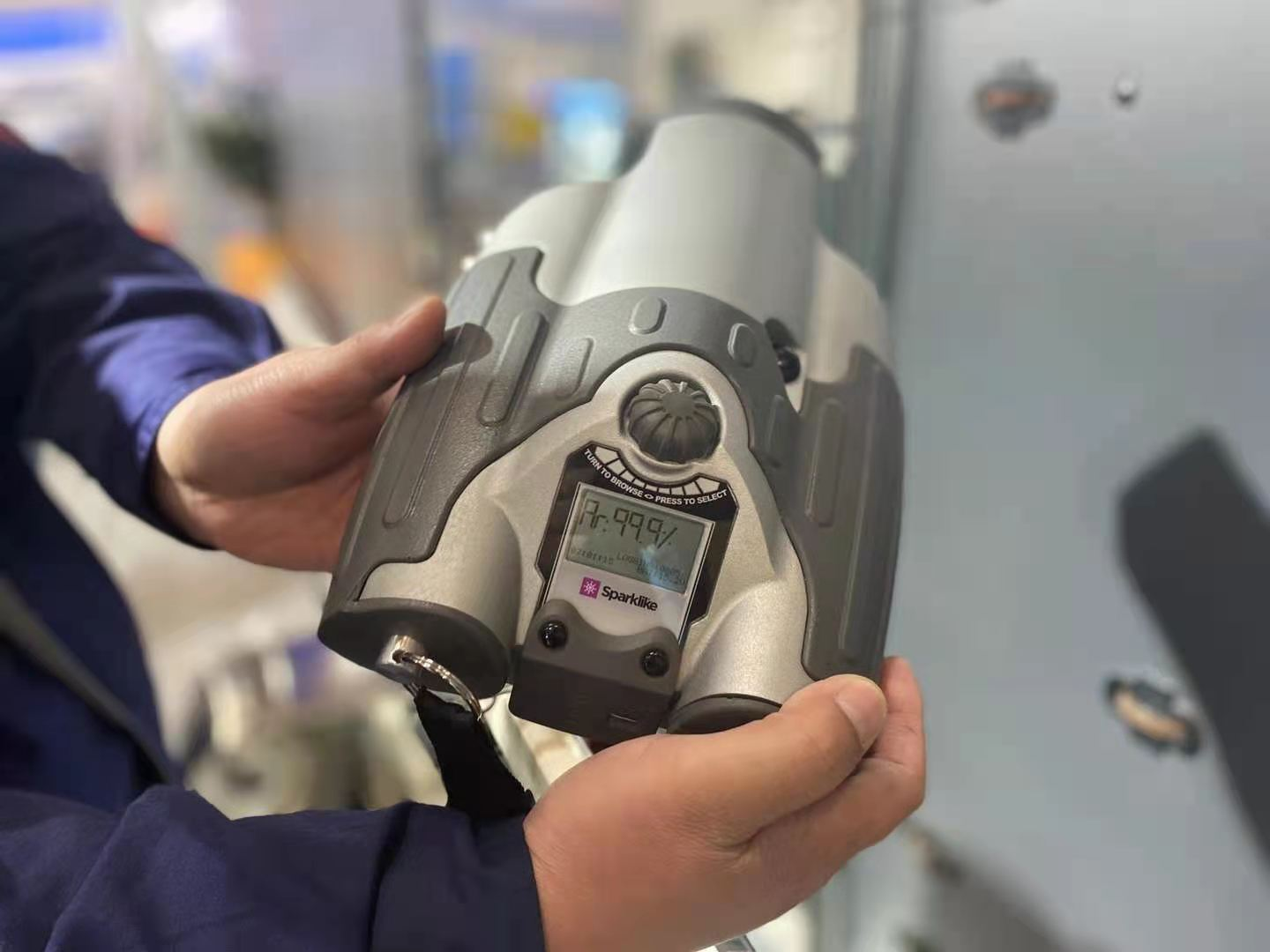 展會天我公司設(shè)備吸引了大量客戶參觀,為此我們現(xiàn)場跟客戶演示我們的板內(nèi)充氣技術(shù),并現(xiàn)場測試了中空玻璃充氣濃度幾乎都在95%以上。