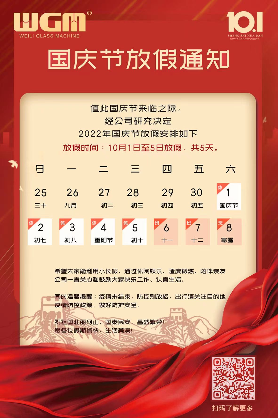 2022年10月1日(周六)-10月5日(周三)為國慶假期,